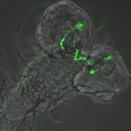 Single-molecule mRNA detection method reveals brain cell types and mRNA localisation patterns in muscle cells of adult Drosophila.