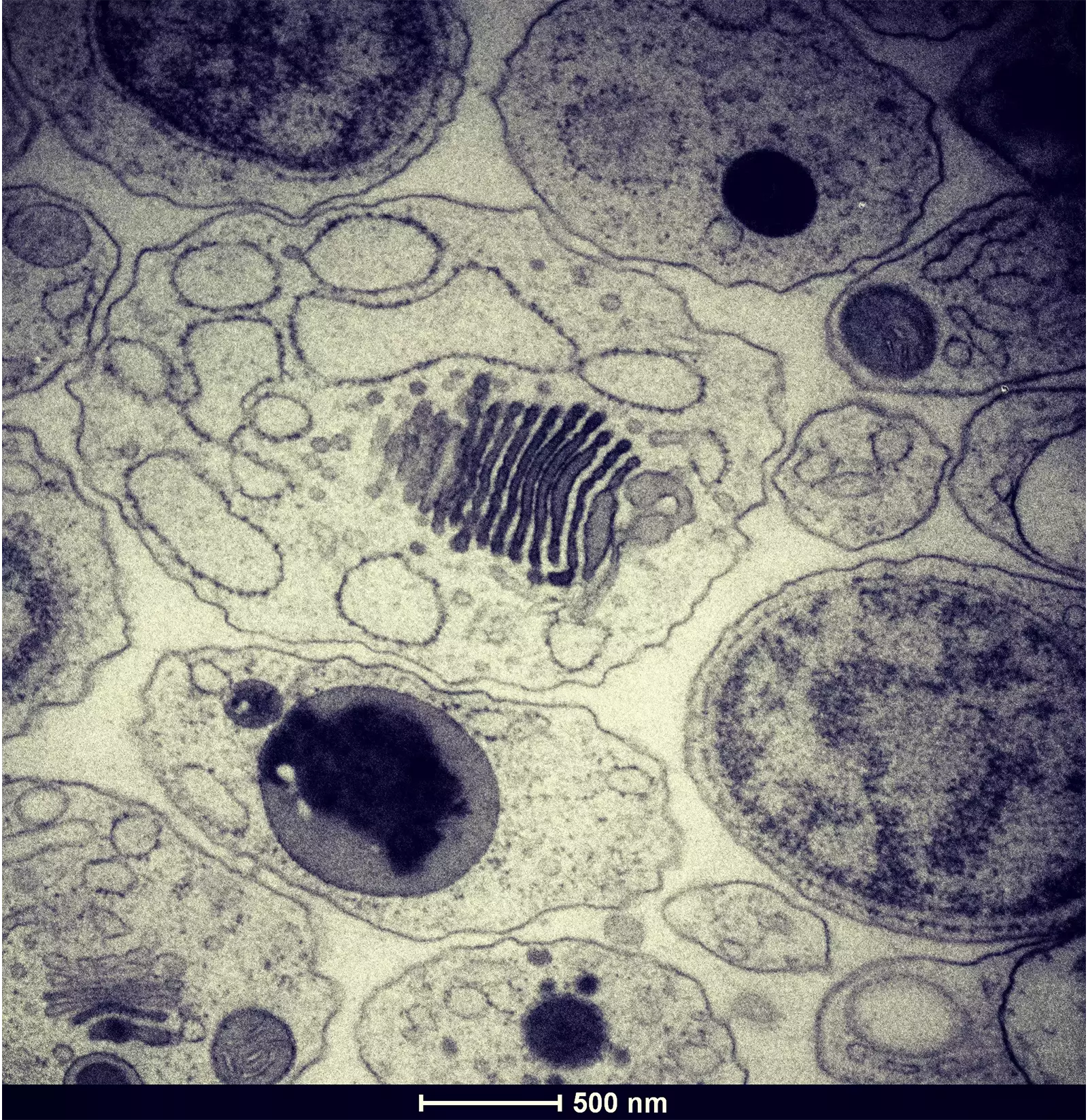 Our services include the sample preparation with the following methods: negative staining, plastic embedding, immuno-labelling, high pressure freezing, freeze substitution, (cryo)-ultramicrotomy… We routinely use advanced imaging modalities such as electron tomography (ET), Scanning Transmission Electron Microscopy (STEM), Scanning Electron Microscopy in « Serial Block-Face » mode, Correlative Light and Electron Microscopy (CLEM)…