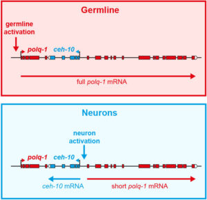 Our team analyzes how the asymmetric divisions of neuronal progenitors are controlled and how various differentiated neuron types are produced in a robust manner. To address these questions we are using the nematode C. elegans as a model organism. C. elegans is a good system to study this process as its nervous system is simple and well characterized. In addition, in C. elegans, the lineage history of every neuron is known, the embryos are transparent and their development can be easily followed by 4D-videomicroscopy. The C. elegans system also offers numerous tools to dissect the molecular basis of biological processes such as genome-wide screens, transgenesis or CRISPR genome engineering. The combination of genome engineering and quantitative live imaging allows us to follow the dynamics of proteins and gene expression in vivo during nervous system development.